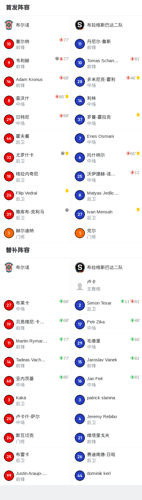 布尔诺3-0大胜布拉格斯巴达B队,尤罗什卡1传1射,雅库布-克利马建功