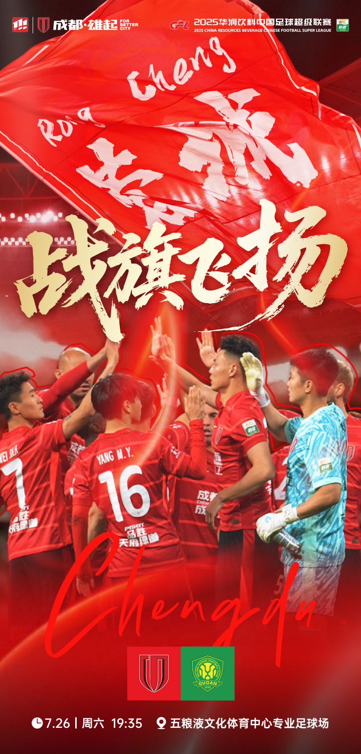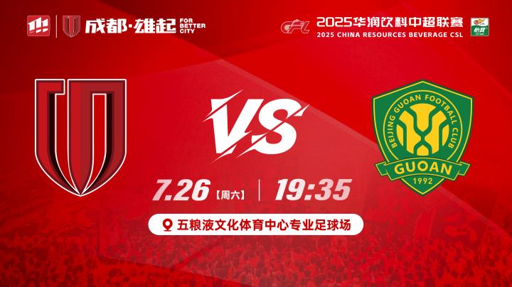 中超联赛 比赛日2025华润饮料中超联赛成都蓉城 vs 北京国安成都蓉城足球俱乐部 @懂球帝2025-07-26 09:38中超联赛 比赛日 2025华润饮料中超联赛 第18轮 ⚽ 成都蓉城 vs 北京国安 📅 7月26日(周六)19:35 🥅 五粮液文化体育中心专业足球场 📺 中央广播电视总台奥林匹克频道(CCTV-16)、成都市广播电视台公共频道、北京广播电视台体育休闲频道、咪咕视频 APP、移动高清、咪视界、咪咕音乐 、央视体育客户端、央视频 成都,雄起!展开更多