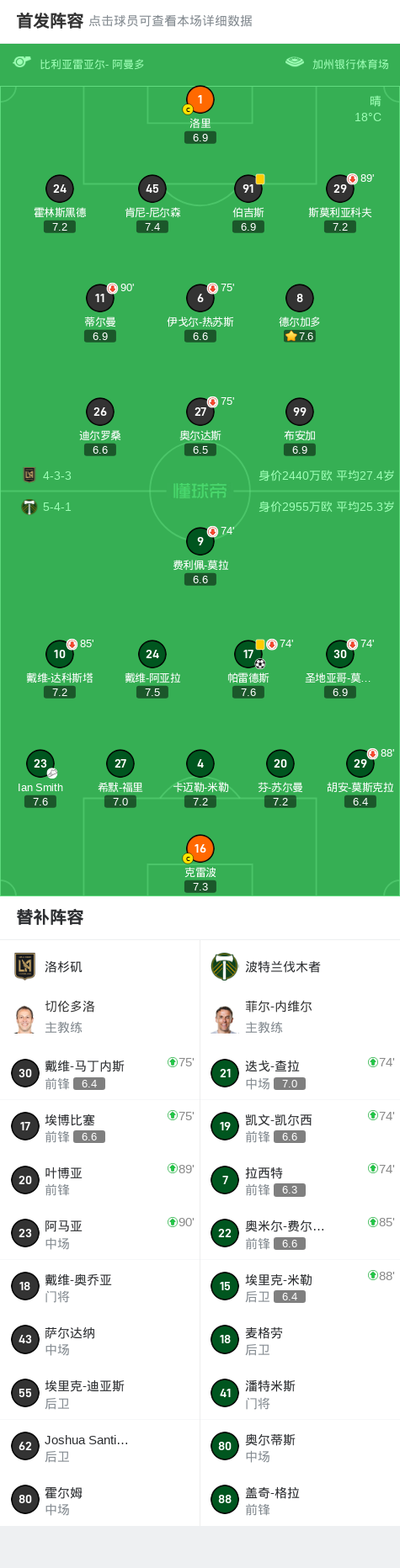 北京时间7月26日美国职业大联盟常规赛,洛杉矶主场迎战波特兰伐木者。比赛中,波特兰伐木者球员帕雷德斯在上半场结束前接队友Ian Smith的助攻打入全场唯一进球。最终,波特兰伐木者以1-0客场取胜。