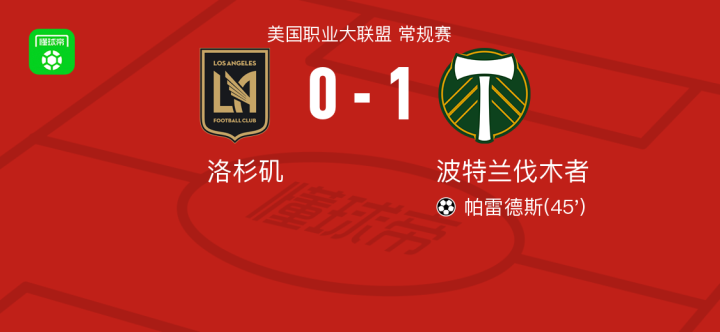 波特兰伐木者1-0洛杉矶,帕雷德斯制胜球