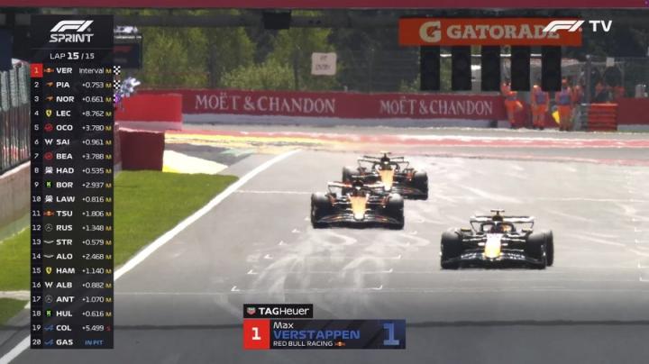 F1比利时冲刺赛:维斯塔潘冠军,迈凯伦二三带回