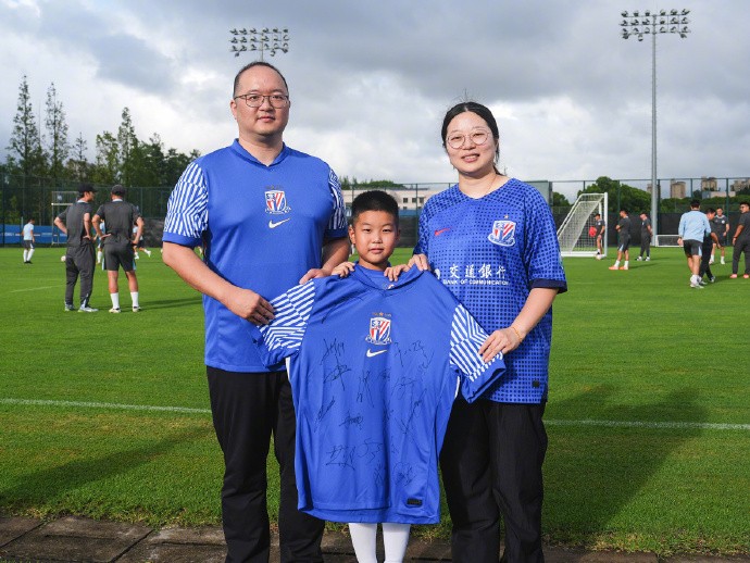 今天下午,上海申花足球俱乐部特别邀请了这对球迷夫妇一家来到久事康桥体育训练基地。在训练开始前,主教练斯卢茨基为他们送上签名球衣,全队用热烈的掌声向他们致以崇高的敬意。
