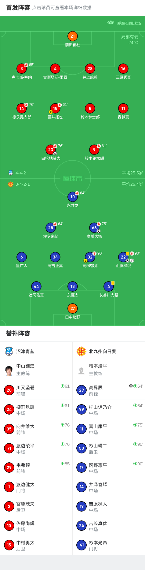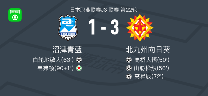 北九州向日葵3-1沼津青蓝,高昇辰破门,山胁桦织1射1传