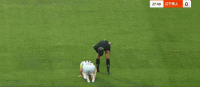 第28分钟,邦本宜裕遭滑铲,稍作恢复后继续坚持比赛
