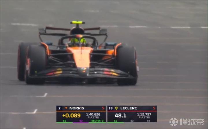 第一个飞行圈结束,诺里斯比队友慢0.089秒。