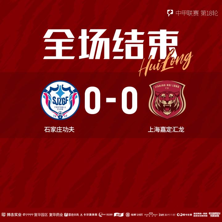 最终,上海嘉定汇龙0-0战平石家庄功夫。