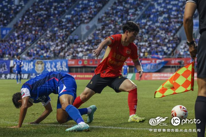 第23分钟,上海嘉定汇龙获得角球机会,科菲头球高出;