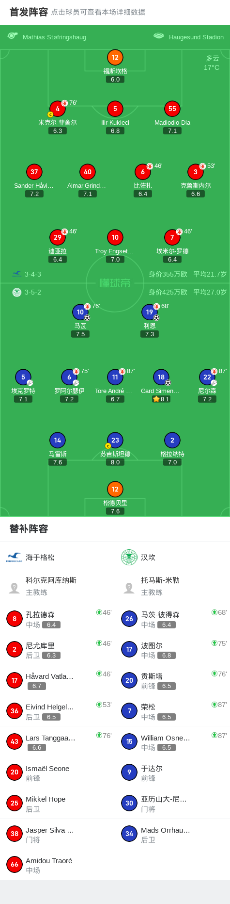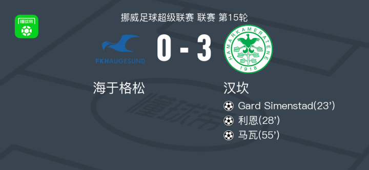 第23分钟,汉坎球员埃克罗特助攻Gard Simenstad打入一球。
