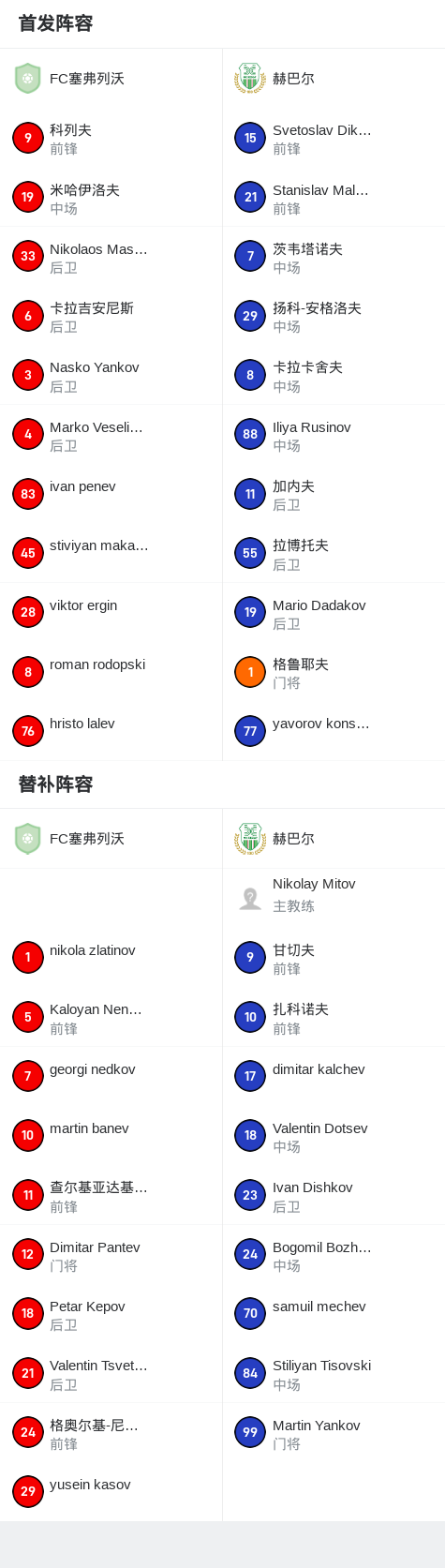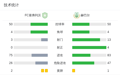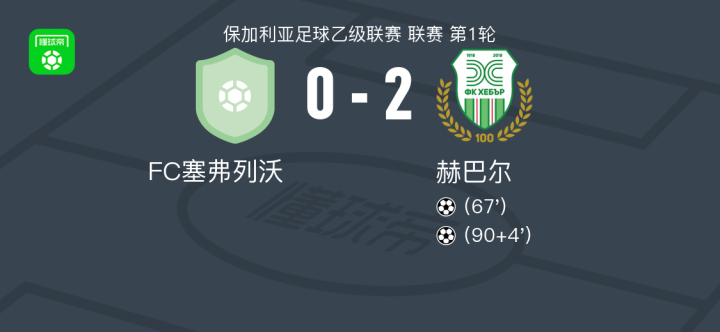 赫巴尔2-0FC塞弗列沃战报bot @懂球帝2025-07-27 01:35北京时间7月26日保加利亚足球乙级联赛 联赛 第1轮,FC塞弗列沃主场对阵赫巴尔。最终比分FC塞弗列沃 0-2 赫巴尔。点击查看本场比赛详细数据>>精彩瞬间第67分钟,赫巴尔球员打入一球。下半场补时第4分钟,赫巴尔球员打入一球。 球队阵容 技术统计 展开更多