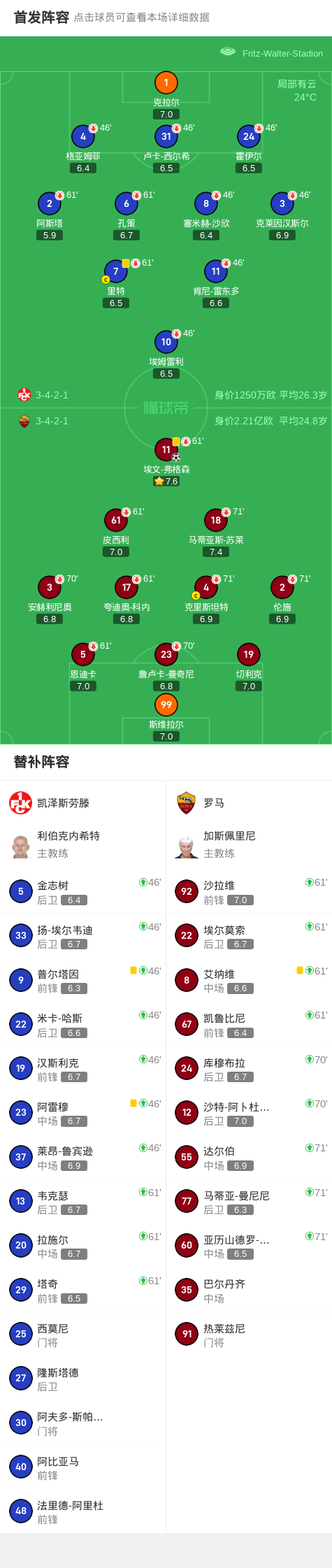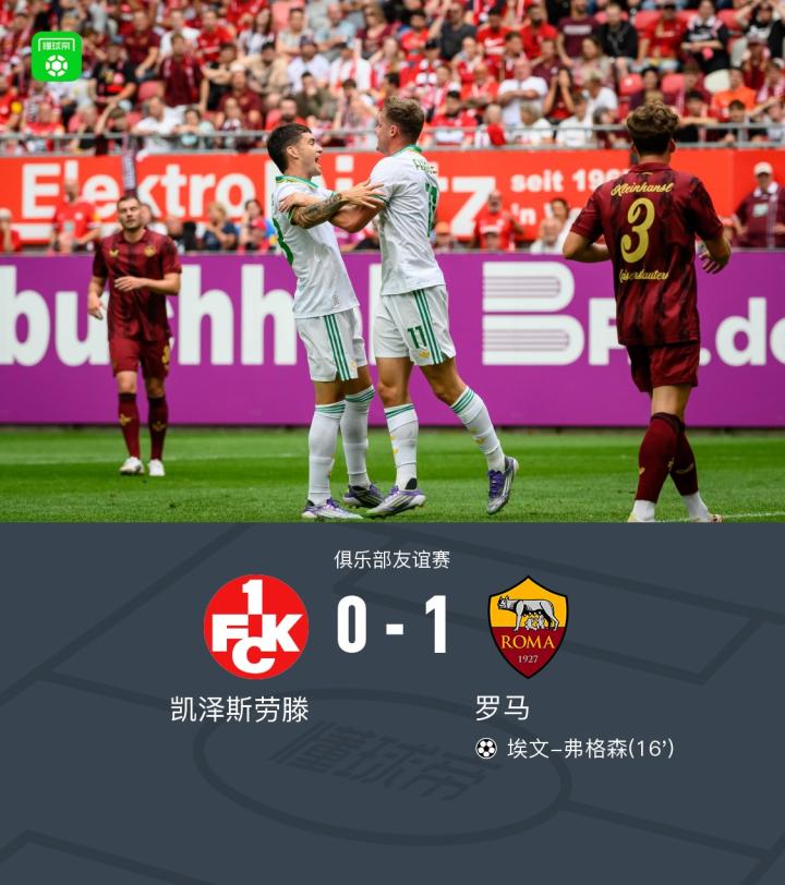 北京时间7月27日,俱乐部友谊赛凯泽斯劳滕迎战罗马。比赛中,罗马球员埃文-弗格森成功打入全场唯一进球。最终比分凯泽斯劳滕 0-1 罗马。