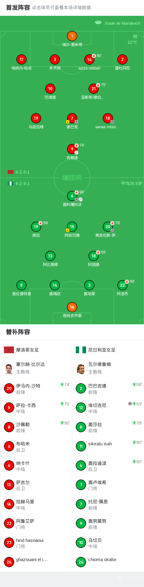 第71分钟,奥科隆科沃助攻,伊贾米卢西破门扳平比分,尼日利亚女足2-2