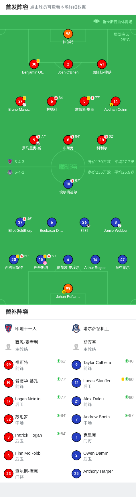 第38分钟,印地十一人球员Bruno Manuel Rendón Cardoso助攻罗马里奥-威廉斯打入一球。