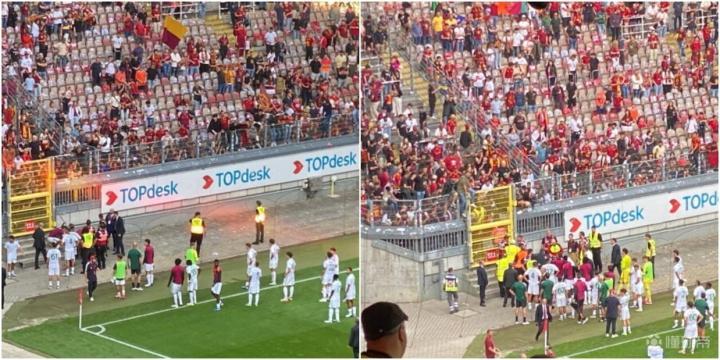 在凯泽斯劳滕主场与罗马的友谊赛结束后,弗里茨-瓦尔特体育场突发意外,一名罗马球迷在终场哨响后从看台跌落,随即被医护人员用担架抬离场地。目前该球迷已被送往医院接受检查,所幸全程保持意识清醒。