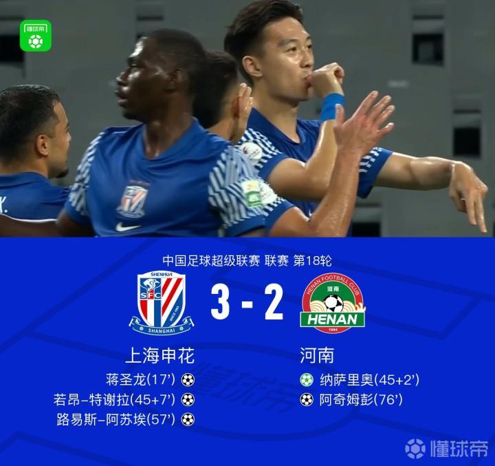申花3-2河南以6分优势领跑,蒋圣龙、阿苏埃建功,朱辰杰伤退