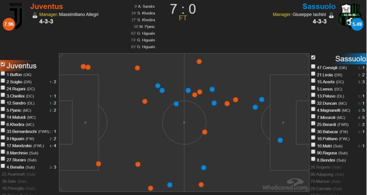 在联赛与那不勒斯不相上下、欧冠即将与热刺打响淘汰赛的关键时期,尤文图斯迎来了一波严重的伤病潮。在这场与萨索洛的比赛中,阿莱格里把自己手里所有能用的进攻球员全都排进了首发,伊瓜因、贝尔纳代斯基和曼朱基奇组成了433的锋线三叉戟。