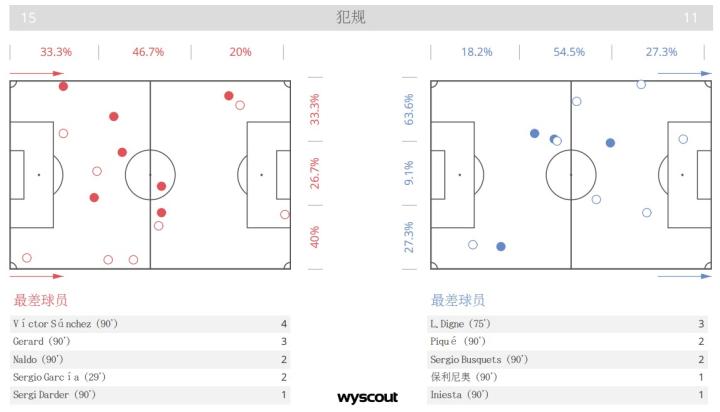 除了经验丰富到顶点的老白之外,没有任何一名巴萨球员的过人达到了2次,巴萨对于球权掌控的困难可想而知。