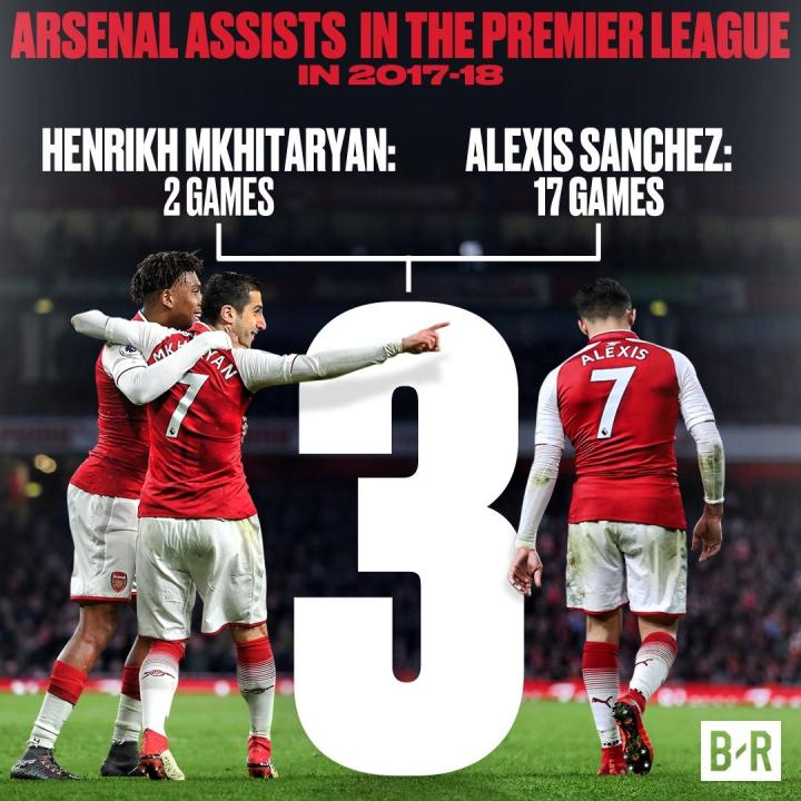 阿森纳5-1击败埃弗顿的比赛中,姆希塔良完成了助攻帽子戏法。由此,他在本赛季为枪手贡献的助攻,已经追上了桑切斯此前在17场比赛里的总和。当然,在曼联2-0击败哈镇的比赛里,桑切斯同样收获了曼联生涯的处子球。