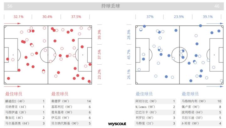 迪涅还是那个中规中矩的迪涅,塞梅多也没能发挥出冲击禁区的特点,他俩加起来也只有5次传中,为队友创造了1次射门机会。