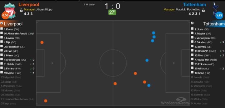 单人PK强如登贝莱者,也无法顺利完成中后场的衔接出球,导致热刺空有后场传递前场却几乎没怎么拿到球权。而利物浦不断在前场重复着围抢、反击、射门的激情循环,劫富本色一览无遗。