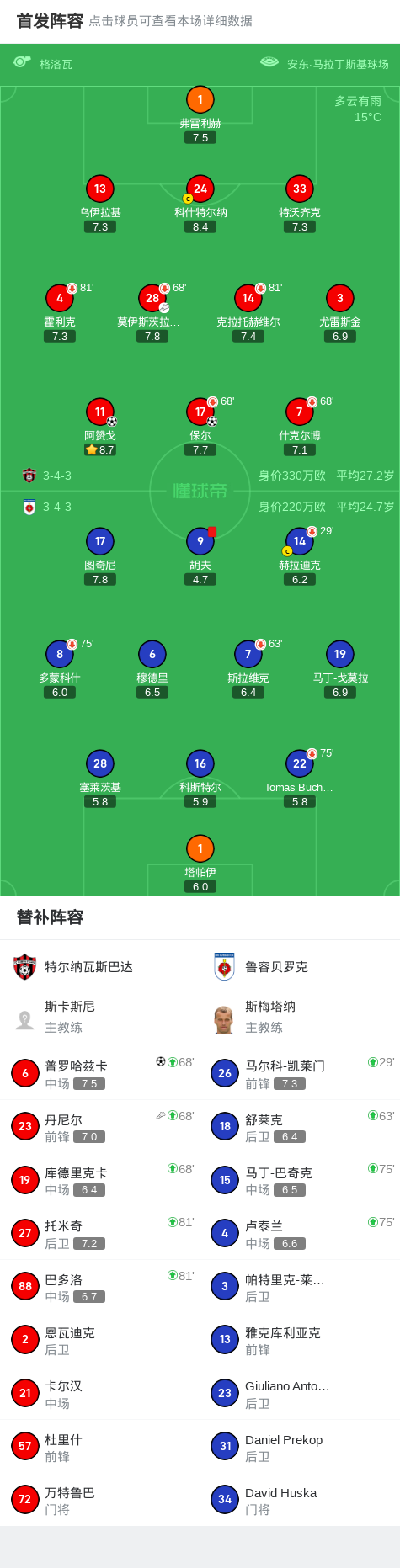 第73分钟,特尔纳瓦斯巴达球员丹尼尔助攻普罗哈兹卡打入一球。