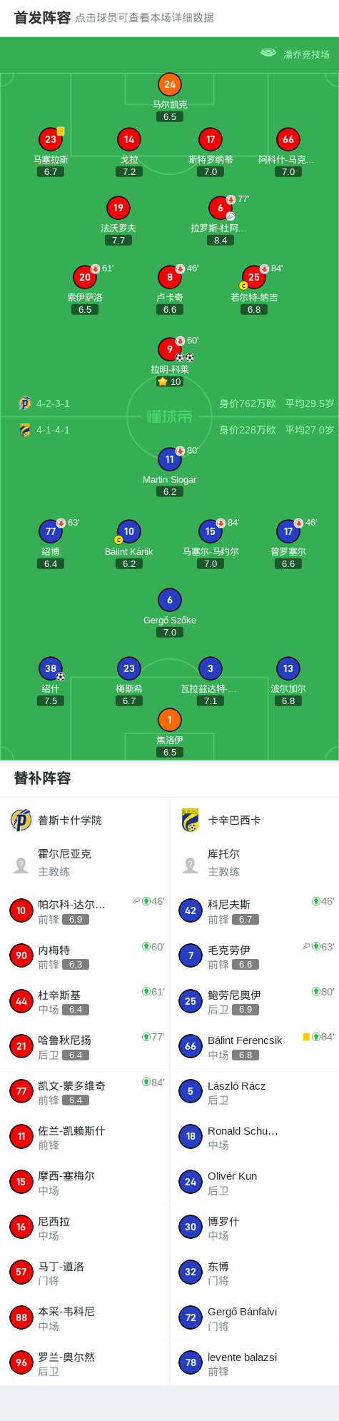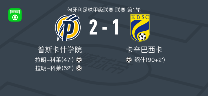 第47分钟,普斯卡什学院球员帕尔科-达尔道伊助攻拉明-科莱打入一球。