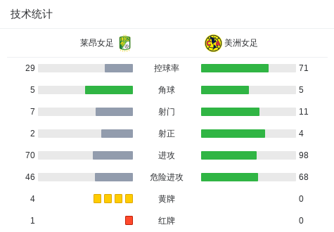 第68分钟,莱昂女足球队塞莱娜-科尔特斯吃到红牌。