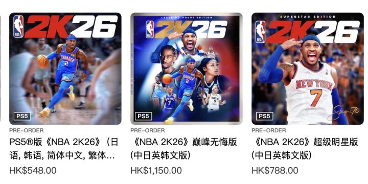 你会入手吗?NBA2K26最贵版本在PS港服售价为1050元