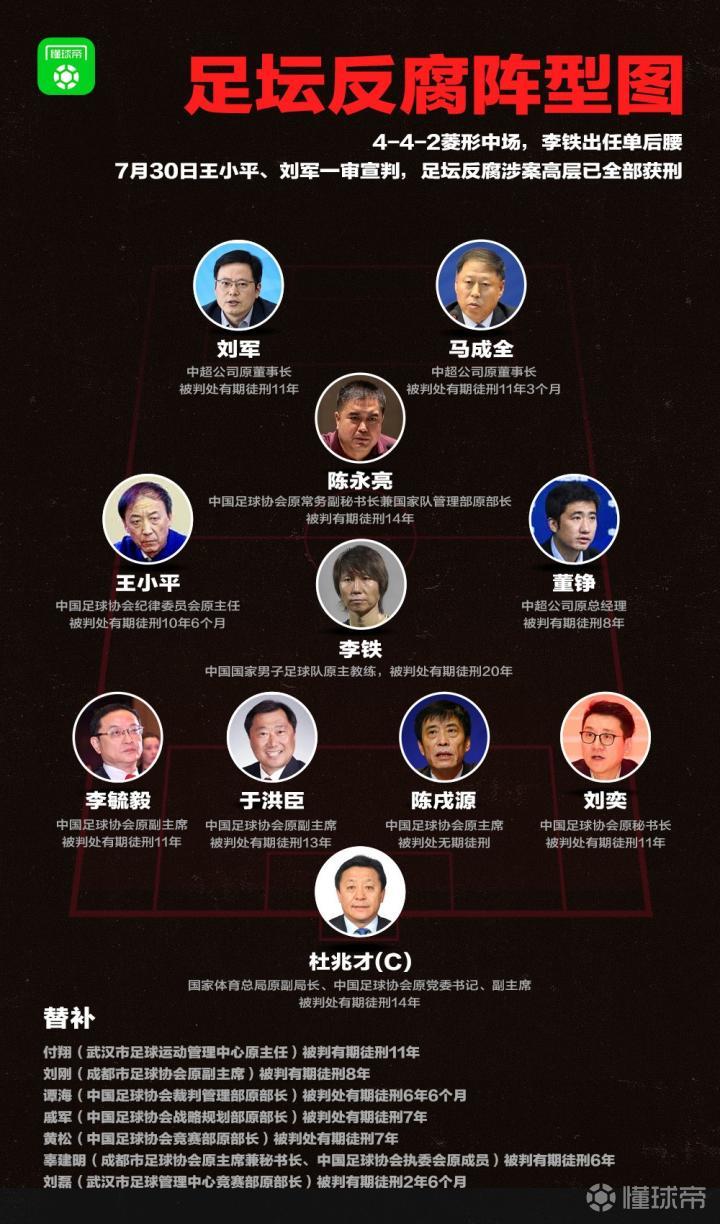 足坛反腐涉案人员全部获刑:陈戌源无期,李铁20年