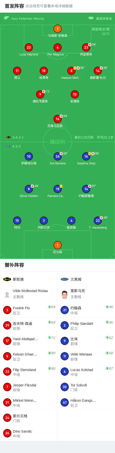 斯凯德0-0兰黑姆,双方破门乏术战报bot @懂球帝2025-07-31 01:55北京时间7月31日,挪威足球甲级联赛第15轮,斯凯德主场迎战兰黑姆。全场比赛结束,双方以0-0握手言和。点击查看本场比赛详细数据>>点击查看挪甲完整积分榜>> 球队阵容 技术统计 展开更多