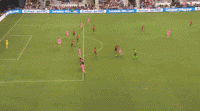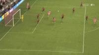 第4分钟,右侧传中,阿吉雷鱼跃冲顶偏出球门
