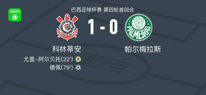 北京时间7月31日巴西足球杯赛 第四轮首回合,科林蒂安对阵帕尔梅拉斯。科林蒂安德佩破门。最终比分科林蒂安 1-0 帕尔梅拉斯。