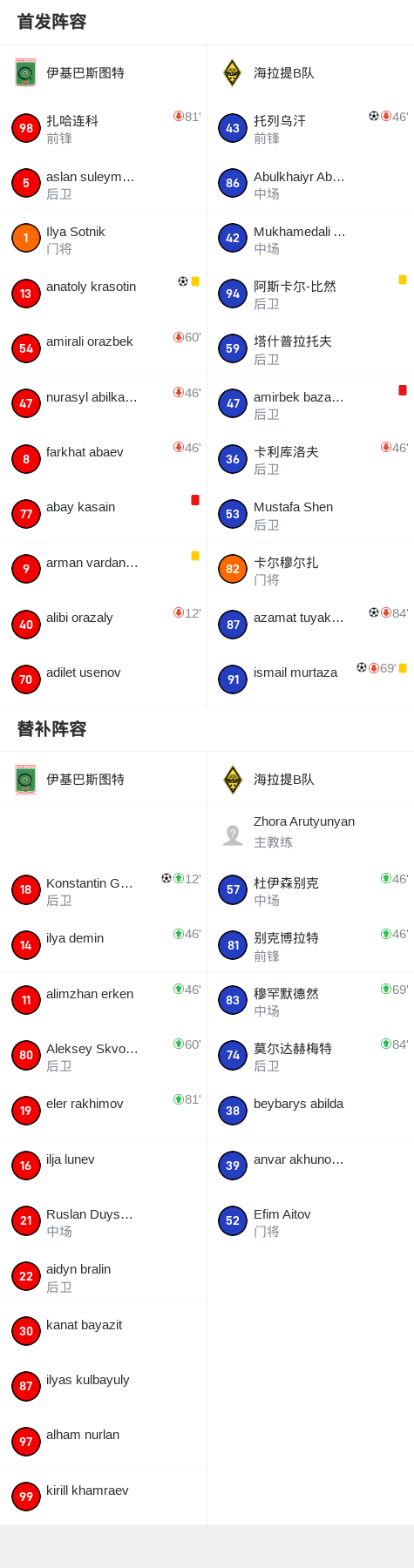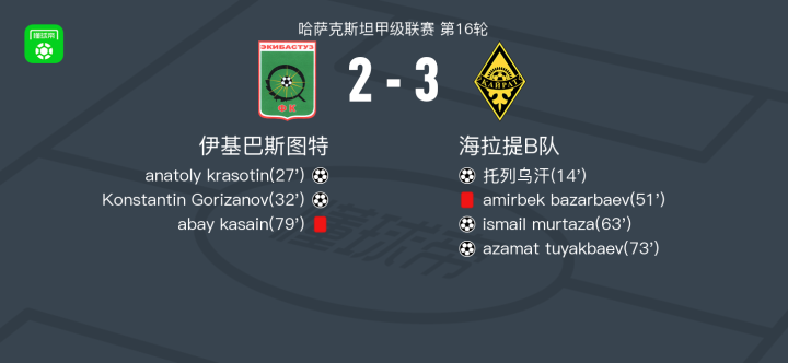 海拉提B队3-2伊基巴斯图特,azamat tuyakbaev传射,ismail murtaza破门