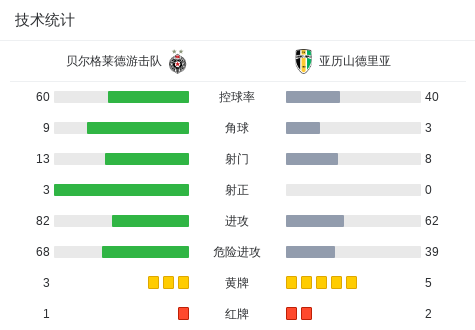 第11分钟,亚历山德里亚球队贝希拉切吃到红牌。