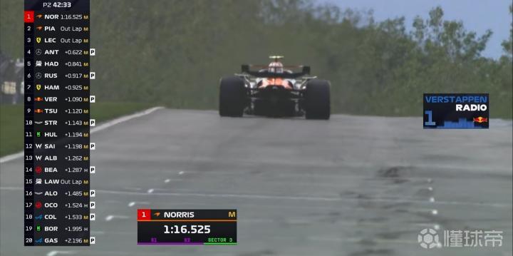 持续发力!诺里斯中性胎新的一圈两段刷紫来到榜首,领先队友0.172秒;