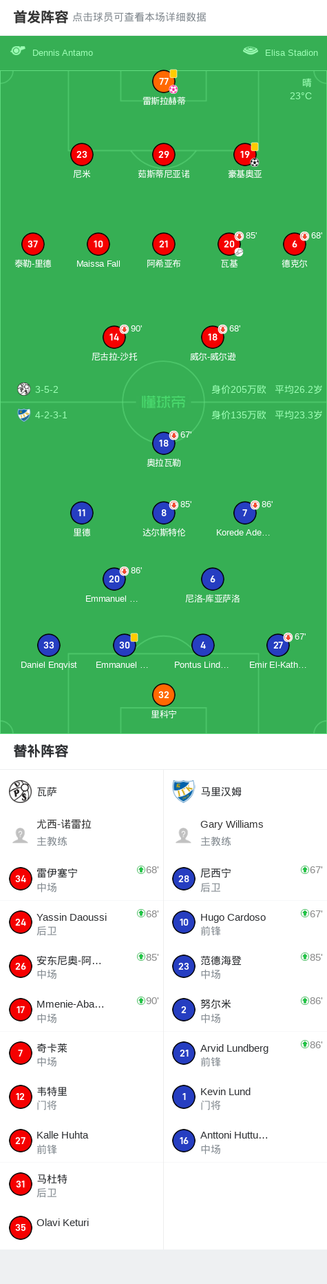 瓦萨1-1马里汉姆,豪基奥亚破门