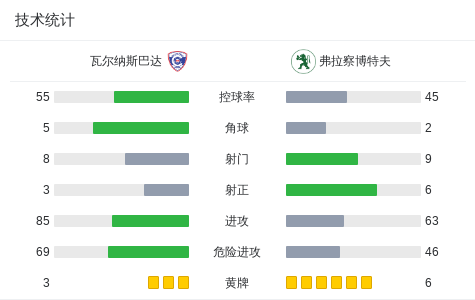 下半场补时第3分钟,瓦尔纳斯巴达球员布迪诺夫打入一球。