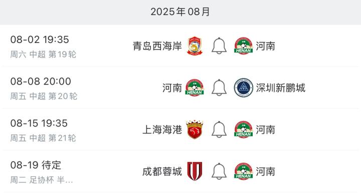 近段时间,河南队在足协杯连克强敌,淘汰浙江队和上海申花,闯入到半决赛。足协杯半决赛前,河南队要在联赛中对阵青岛西海岸、深圳新鹏城和上海海港,其中前两场尤为关键,是河南队拿分的好机会,只有减轻积分压力,才能在足协杯赛场放手一搏。