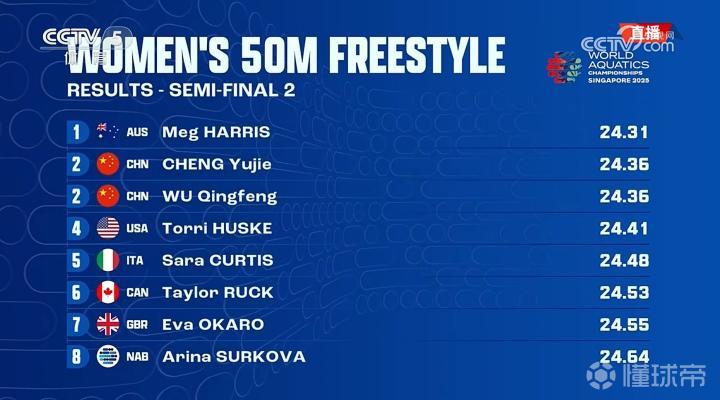 女子50米自由泳:程玉洁、吴卿风并列第五,晋级决赛