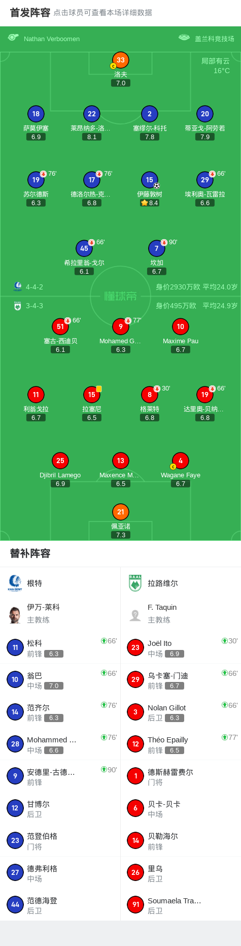 根特1-0拉路维尔,伊藤敦树绝杀战报bot @懂球帝2025-08-03 04:39北京时间8月3日比利时足球甲级联赛第2轮,根特主场迎战拉路维尔。比赛中,根特球员伊藤敦树攻入全场唯一进球。最终比分根特 1-0 拉路维尔。点击查看本场比赛详细数据>>点击查看比甲完整积分榜>>精彩瞬间第87分钟,根特球员伊藤敦树打入一球。 球队阵容 技术统计 展开更多