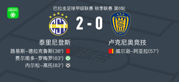 泰里尼登斯2-0卢克尼奥竞技,费尔南多-罗梅罗破门,内尔松-高托锁定胜局