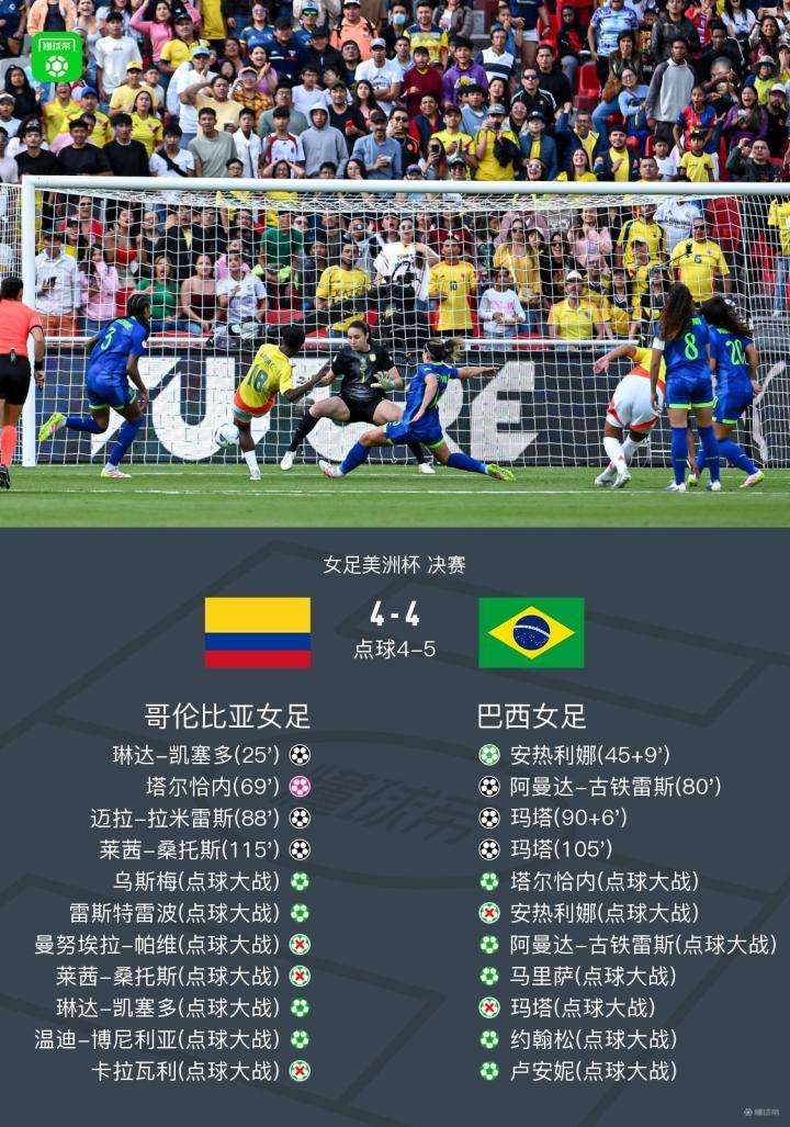 点球大战,巴西女足5-4哥伦比亚女足