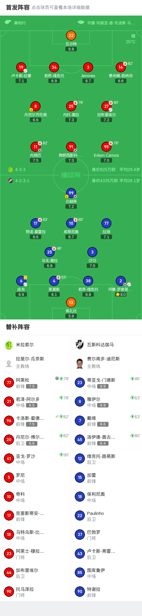 第66分钟,瓦斯科达伽马球员皮东助攻何塞-罗德里格斯打入一球。