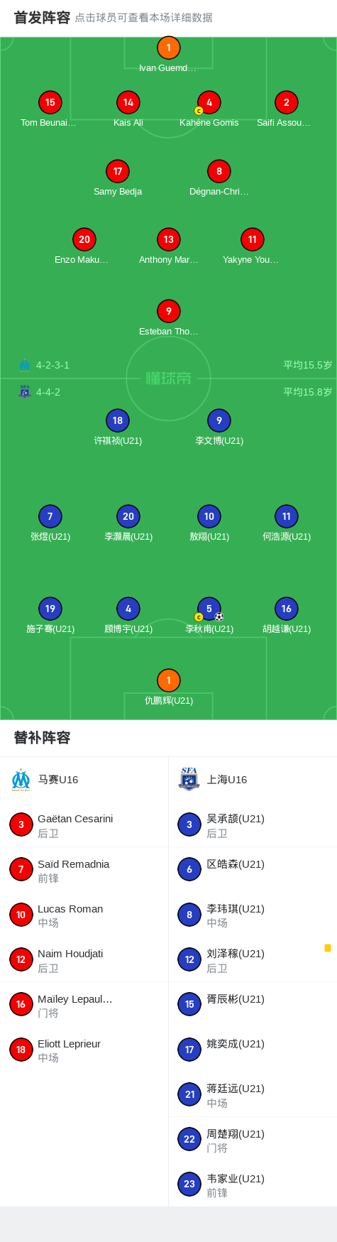 上海U16 1-0马赛U16,李秋甫一锤定音战报bot @懂球帝2025-08-03 11:488月3日,上海明日之星冠军杯足球赛排位赛展开角逐,马赛U16迎战上海U16。比赛中,上海U16球员李秋甫成功打入全场唯一进球。最终比分定格为马赛U16 0-1 上海U16。点击查看本场比赛详细数据>>精彩瞬间第58分钟,上海U16球员李秋甫打入一球。 球队阵容 展开更多