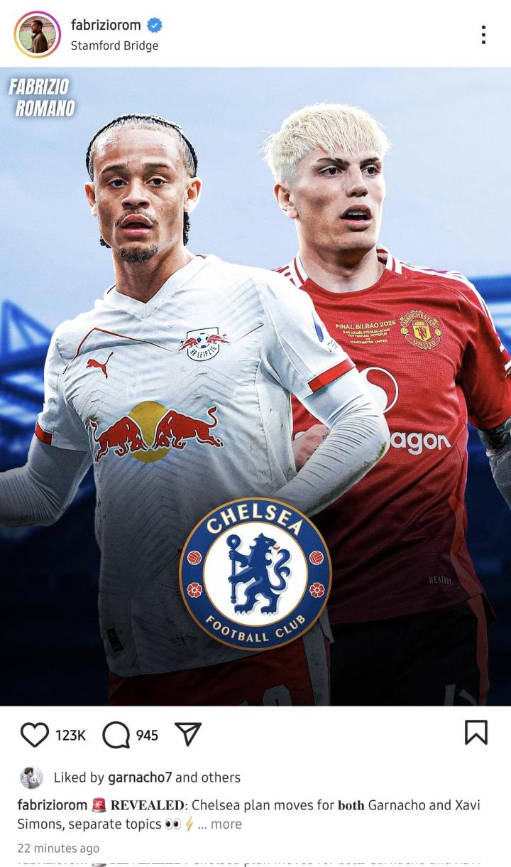 加纳乔点赞罗马诺动态,内容是切尔西已经将他列入引援名单