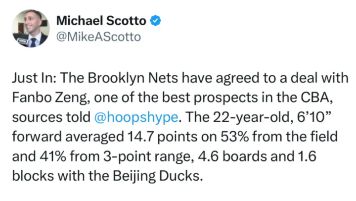 突然宣布签约!曾凡博得到篮网合同,继续冲击NBA