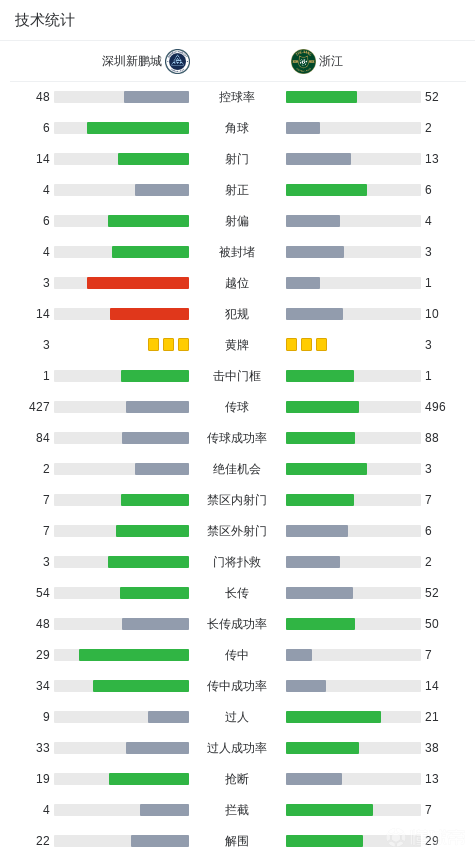 第65分钟,廖力生角球开到后点,杨一鸣头球破门,新鹏城2-1浙江