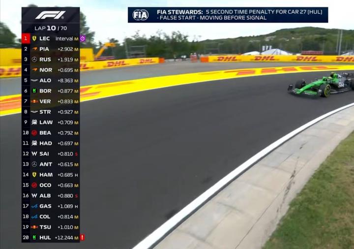 第10圈:霍肯博格因抢跑被罚时5秒,博托莱托则在赛会调查后免受处罚!