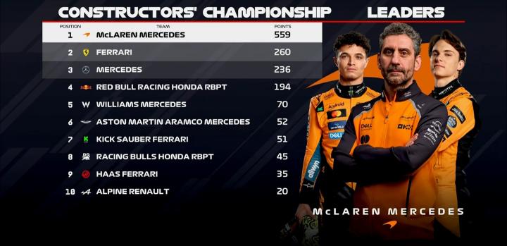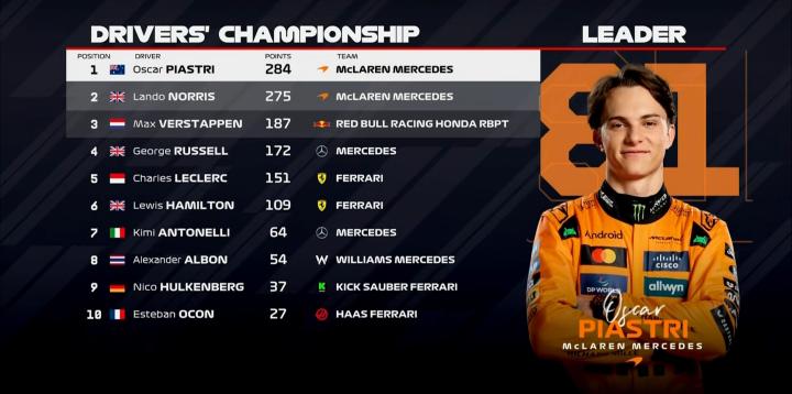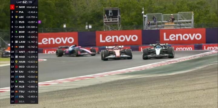 第1-第5:诺里斯、皮亚斯特里、拉塞尔、勒克莱尔、阿隆索