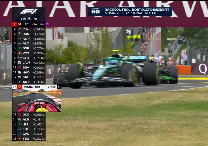 第5圈:博托莱托存在灯灭前赛车移动的情况,他将接受赛会的调查!