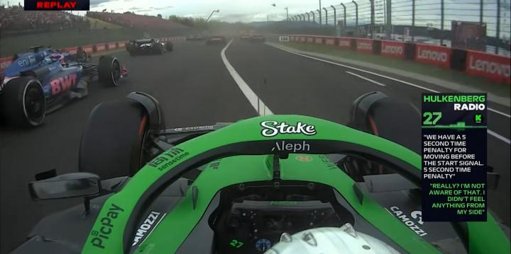 回放显示霍肯博格的赛车存在抢跑的状况,而车手本人则并未察觉;